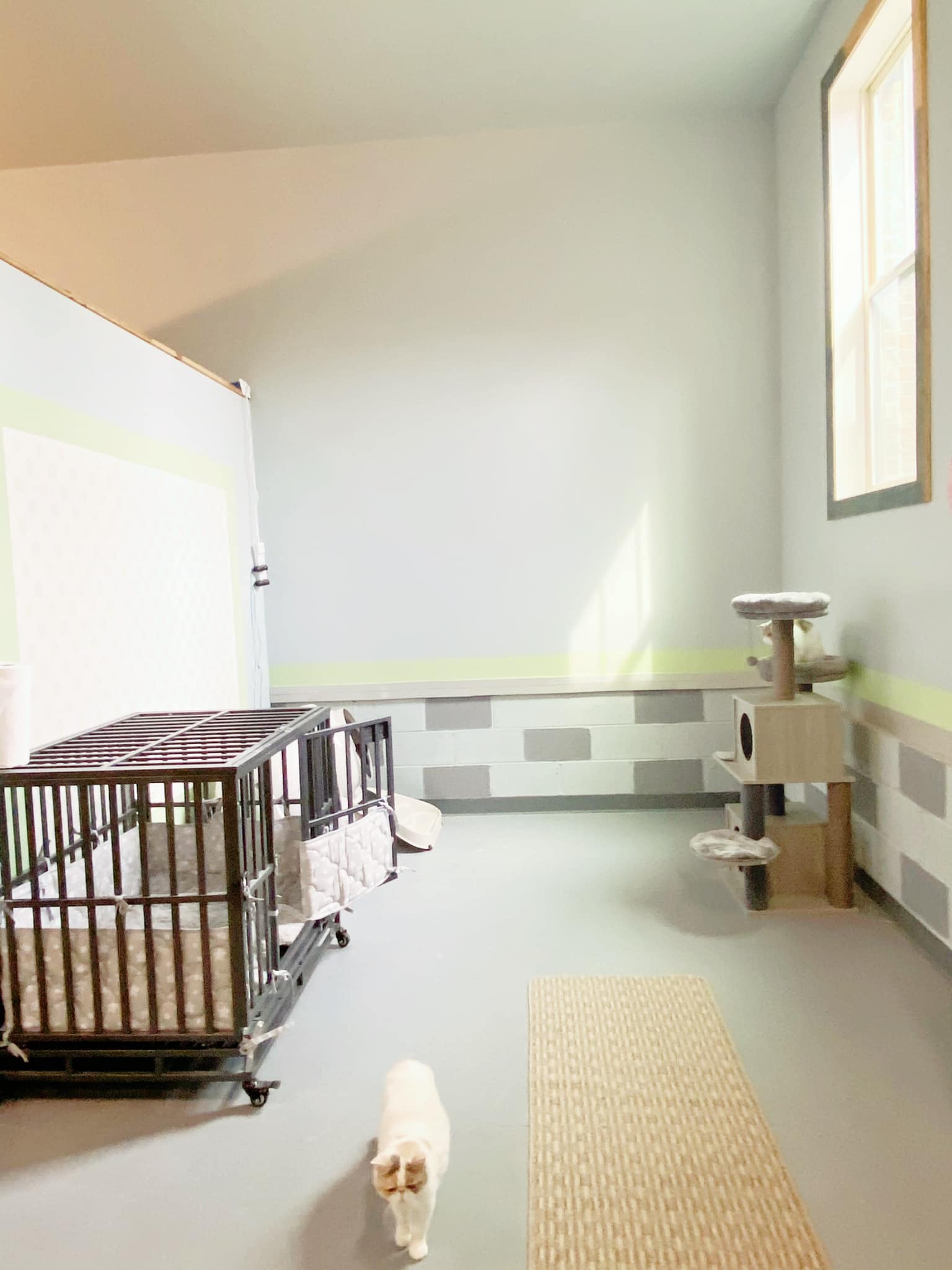 During this period, both moms and babies are moved to the "Itty Bitty Day Care". This is where kittens will learn to play, eat solid foods and use their litter box. This daycare consists of two rooms that are large enough for kittens to run and play but small enough to keep them contained and allow them to learn to use the litter box. These rooms have small cat trees & toys for stimulation. They have 4 foot barn doors and wooden planks on top so momma cats do not move kittens out of the rooms. These rooms are still under construction and will eventually be upgraded to have windows instead of wooden planks. More pictures coming soon!